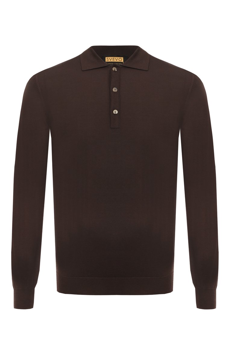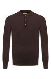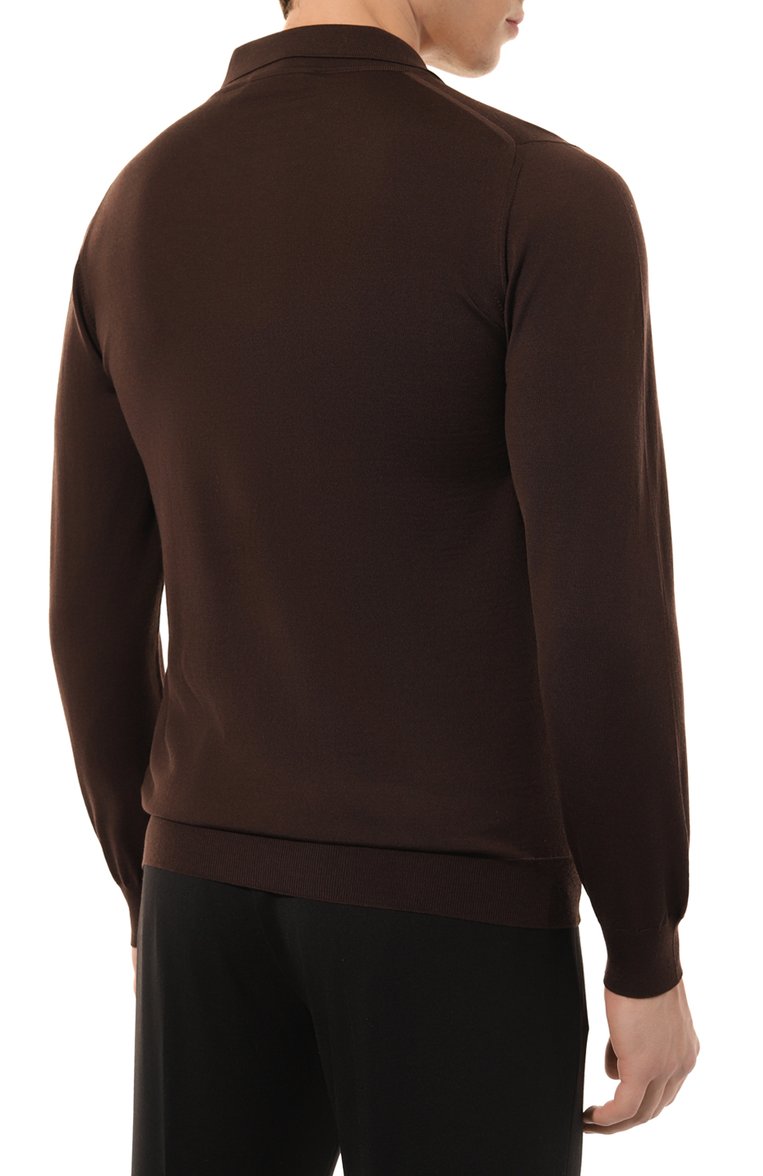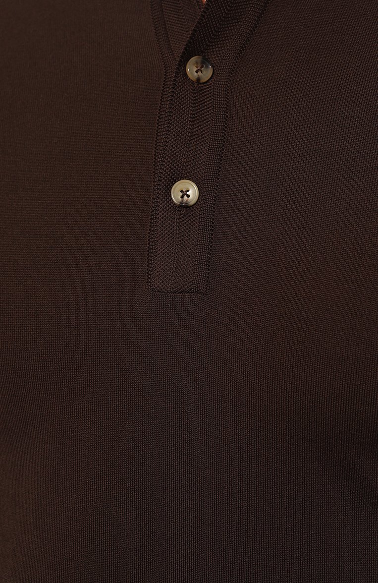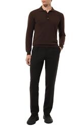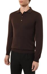 Поло с длинными рукавами и короткой планкой на пуговицах выполнили из шерстяного трикотажа. Наши стилисты предлагают носить модель со строгими брюками, завершив образ в темных тонах дерби.