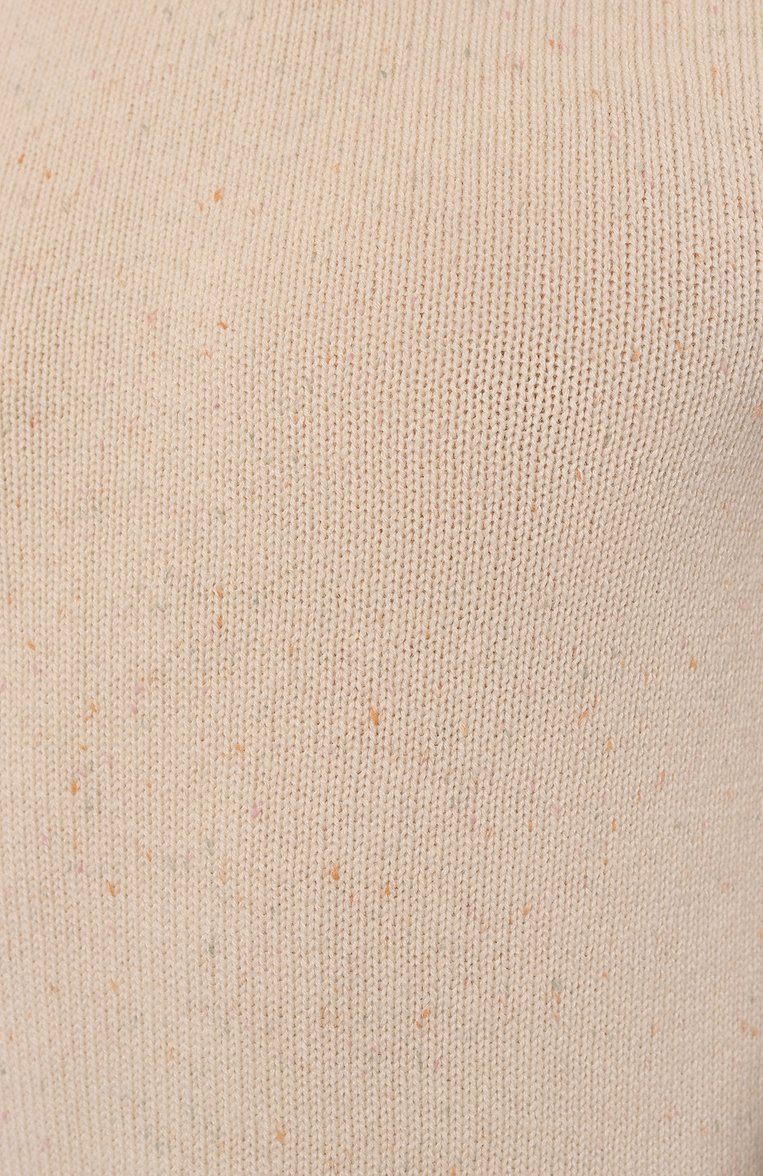 Свитер с еле заметным меланжевым узором выполнили из шерстяной пряжи. Модель дополнили широкими эластичными манжетами и поясом. Изделие впишется в нестрогий комплект с карго или джинсами.
