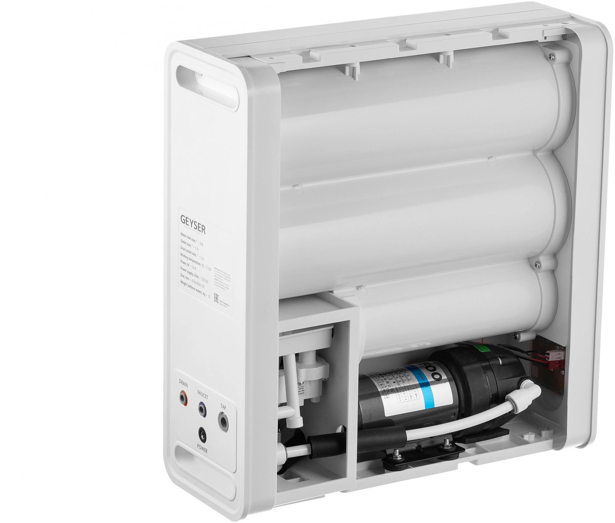 ОписаниеГЕЙЗЕР OSMO LUX - производительная система обратного осмоса в стильном корпусе. Современный сверхкомпактный корпус. Работает без накопительного бака. Высокая производительность. Удобная замена картриджей. Фильтр имеет компактный размер и занимает мало места под мойкой.