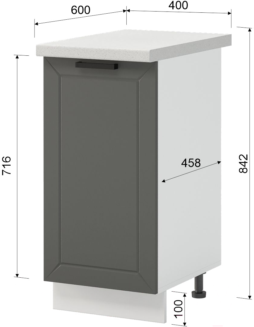 - Глубина 60 см (по столешнице); 45.8 см (по корпусу)