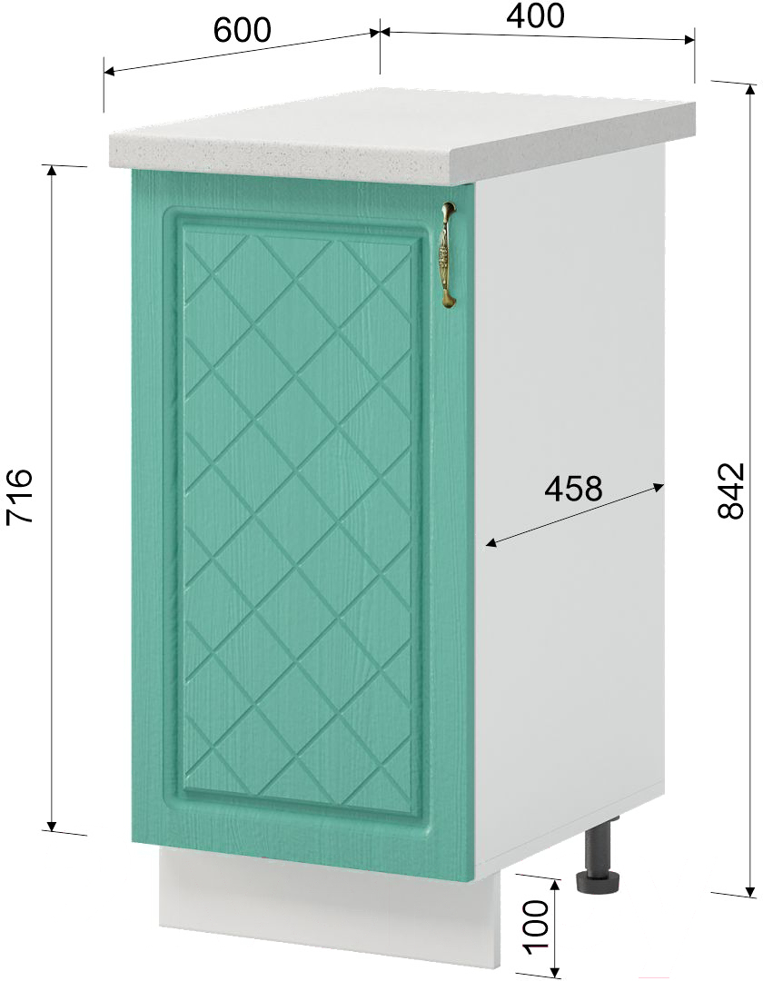 - Глубина 60 см (по столешнице); 45.8 см (по корпусу)