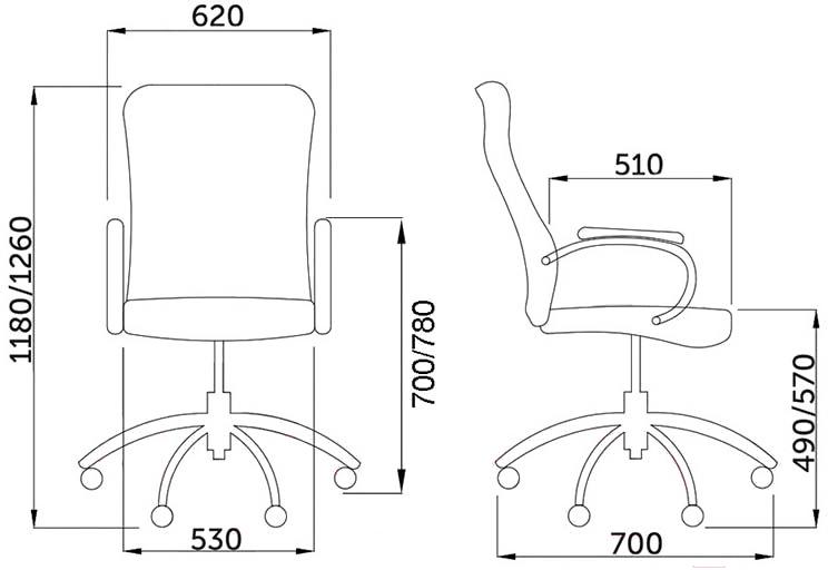 • Высота по подлокотникам от 70 до 78 см