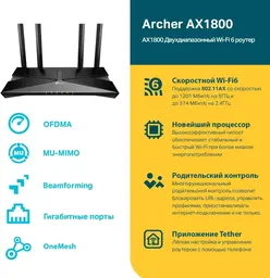 ОписаниеСкорость Wi-Fi до 1,8 Гбит/с — наслаждайтесь плавными стримами, загрузкой файлов и онлайн-играми без задержек и буферизации