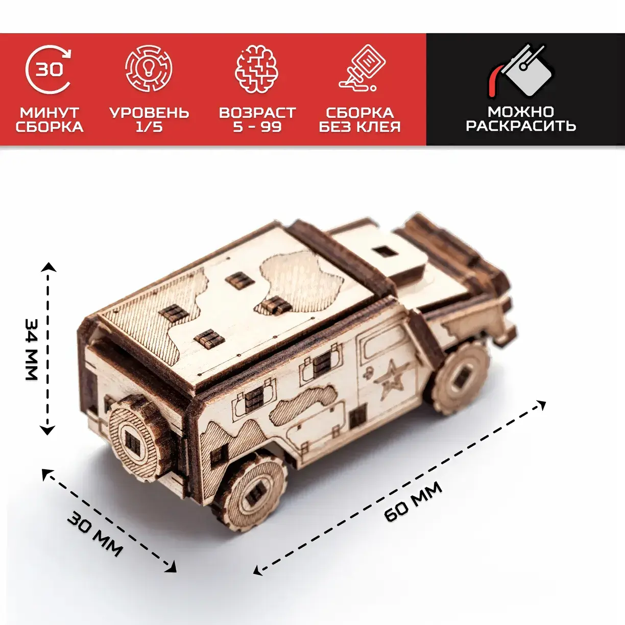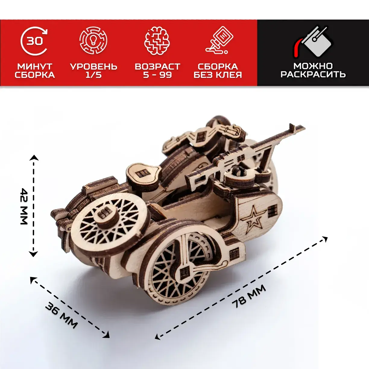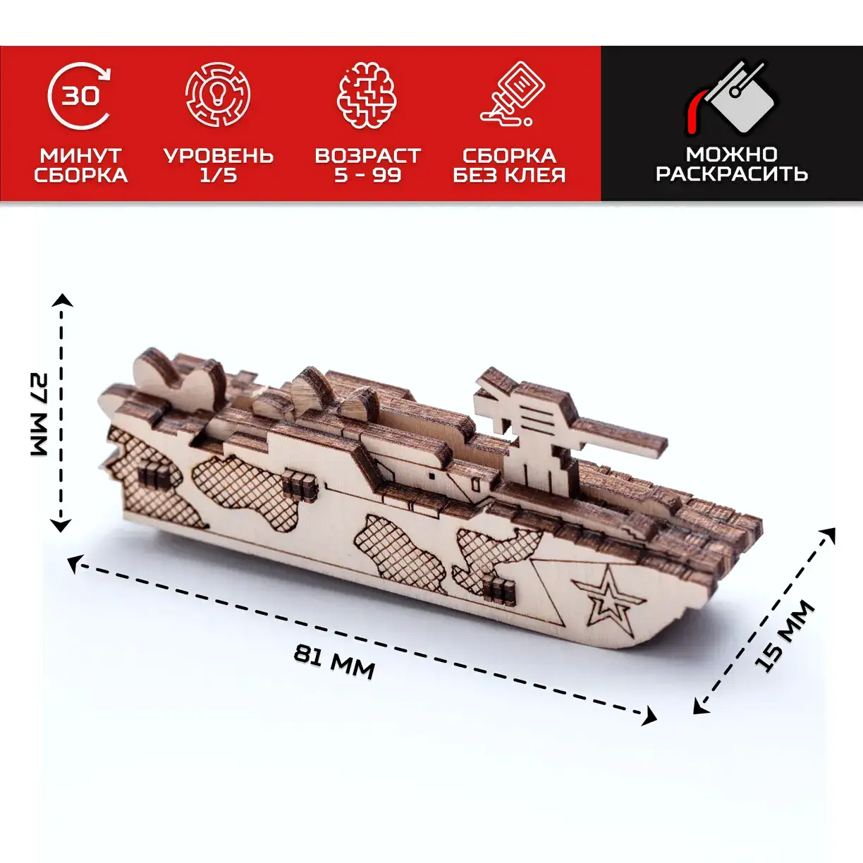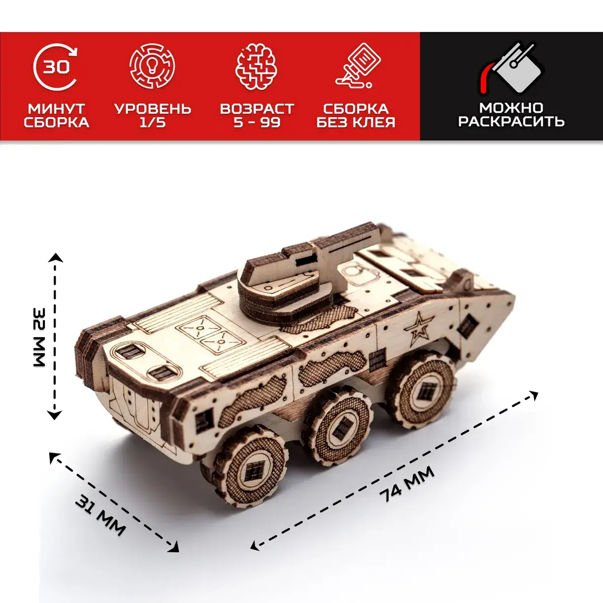 • Высота 3.2 см (танк), 2.7 см (катер), 3.4 см (автомобиль), 4.2 см (мотоцикл)