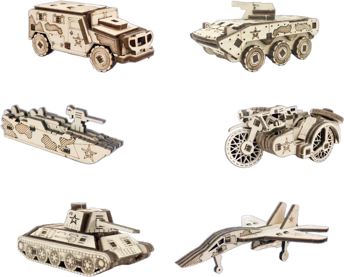 Набор игрушечной техники Армия России Большой набор деревянных конструкторов 6 в 1 / AR-K019