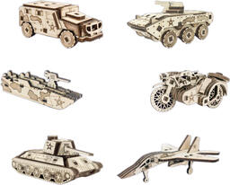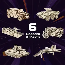 • В комплекте самолет (1 шт.), катер (1 шт.), бронетранспортер (1 шт.), мотоцикл (1 шт.), автомобиль (1 шт.), танк (1 шт.)