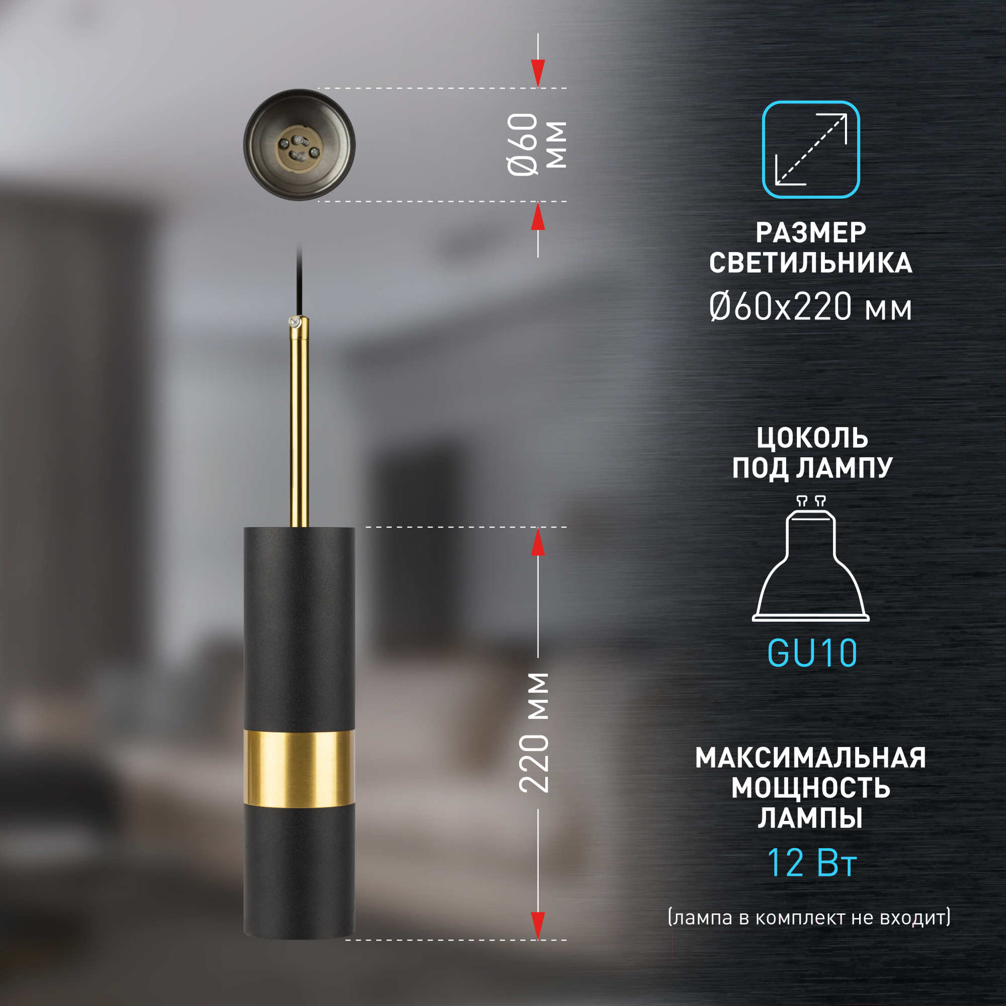 • Максимальная мощность лампочки 12 Вт