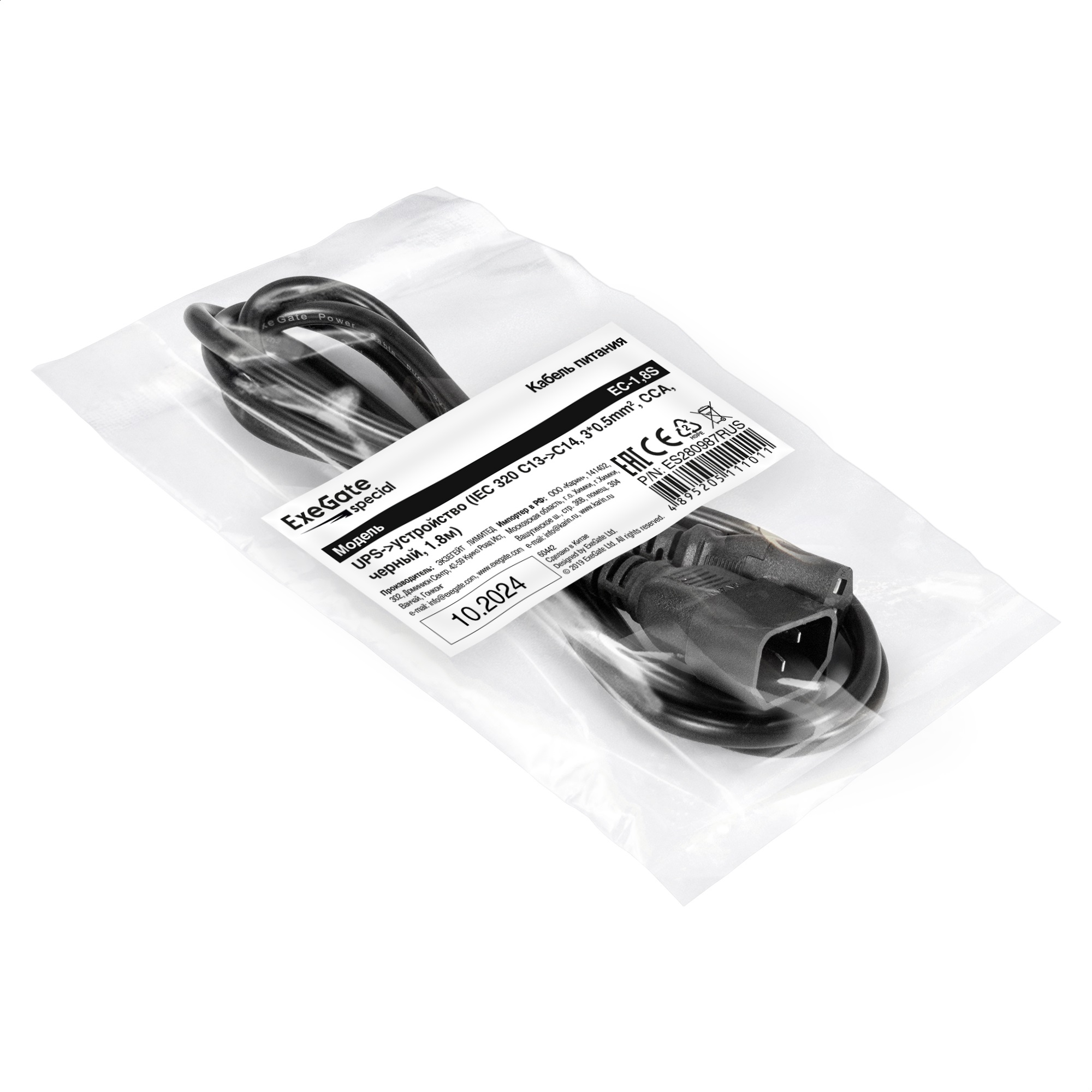 Кабель питания ExeGate Special EC-1.8S-C13->C14/3x0.5 (C13->C14, 3*0.5mm2, CCA, черный, 1.8м)