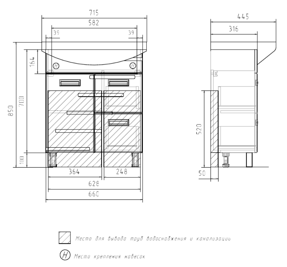 Volna Joli 70.1D.2Y с умывальником Балтика 70