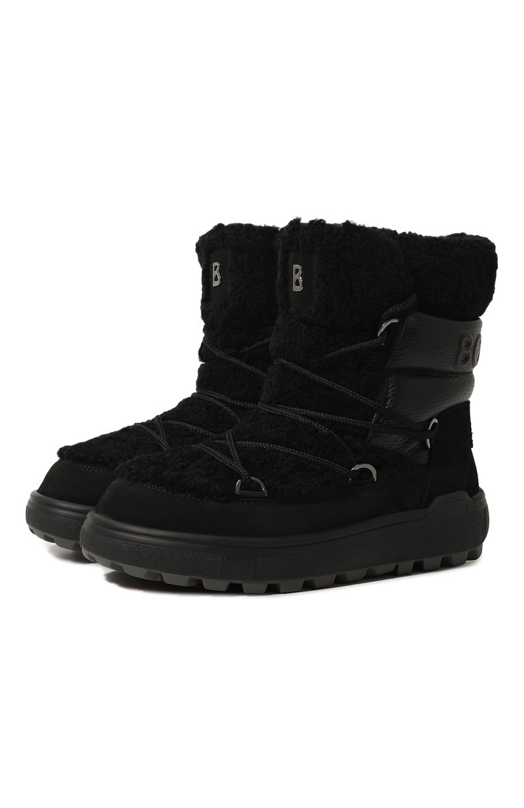 Полусапоги Chamonix со шнуровкой скомбинировали из зернистой кожи, замши и фактурного материала с коротким плотным ворсом. Модель на широкой подошве с нескользящим протектором украсили на язычке литерой «B», зарифмованной с тисненым логотипом сзади.