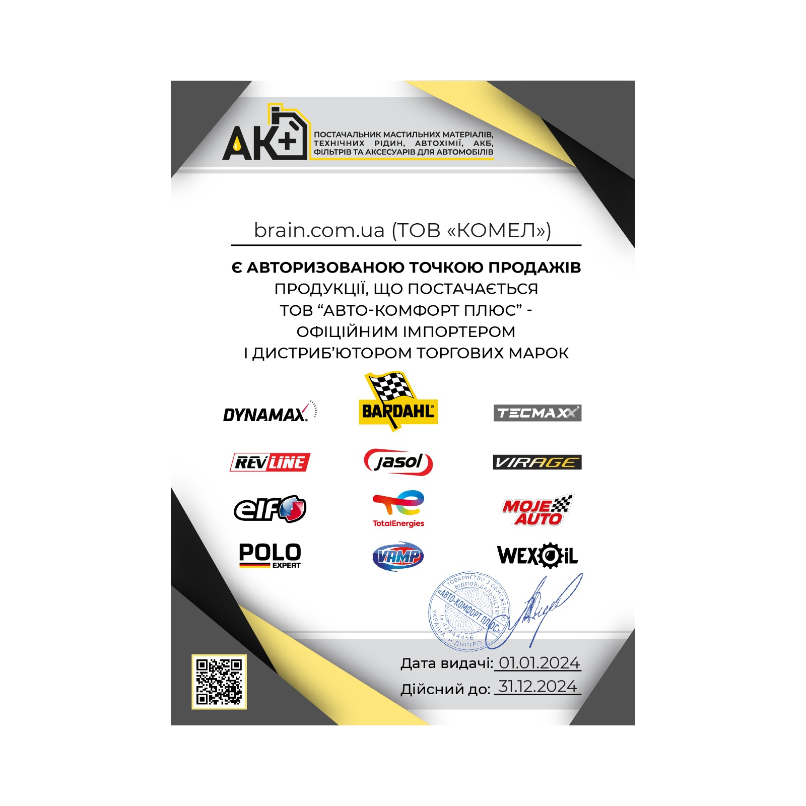 • Допуски ОЕМ VW 505.00 , VW 502.00 , Porsche A40 , BMW LL-01 , MB 229.5