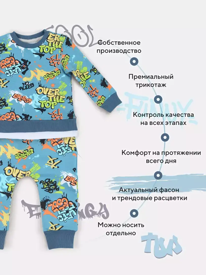 • Количество в комплекте 2 шт. (свитшот+штаны)
