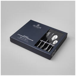 Набор столовых приборов AGNESS не только прекрасно выглядят, но и обладают отличной функциональностью. Вилки и ложки имеют комфортные ручки, которые удобно держать в руке. Каждый предмет выполнен из нержавеющей стали , что обеспечивает долговечность и устойчивость к коррозии. Набор столовых приборов является отличным выбором для кухни, где они могут быть использованы в повседневной жизни или во время особых событий и праздников. Они также подходят для ресторанов и кафе, добавляя шарма и элегантности к сервировке стола. Благодаря своей прочности и изысканному дизайну, этот набор столовых приборов станет вашим надежным и стильным спутником на многие годы.Чтобы приборы прослужили долго необходимо соблюдать ряд правил по уходу: использовать мягкие материалы, щадящие моющие эко вещества, замачивать застарелые пятна, исключая механическое воздействие. Запрещается использовать абразивные и хлоросодержащие средства.