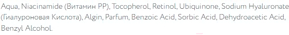 • Активные ингредиенты витамин PP, гиалуроновая кислота, коэнзим Q10, ретинол