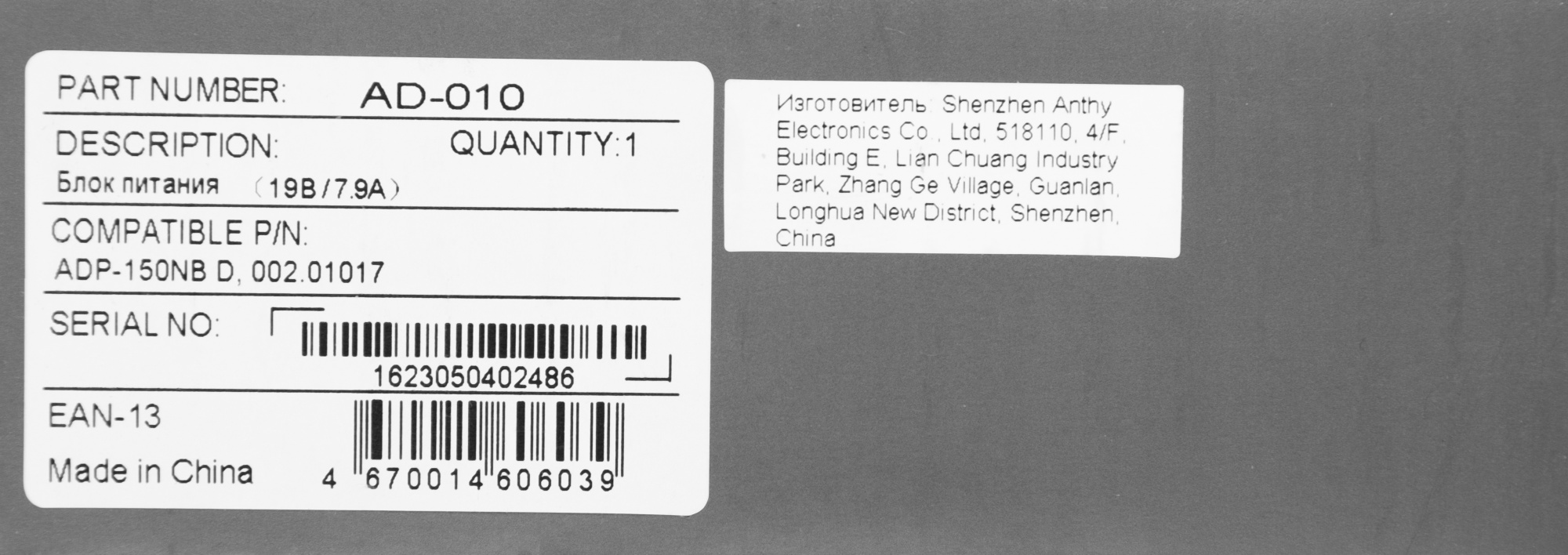 • Описание Блок питания Pitatel AD-010 для ноутбуков Acer, Asus, Fujitsu Siemens, HP, Lenovo, MSI, Packard Bell, Roverbook, Toshiba