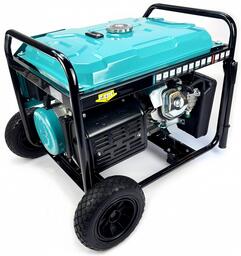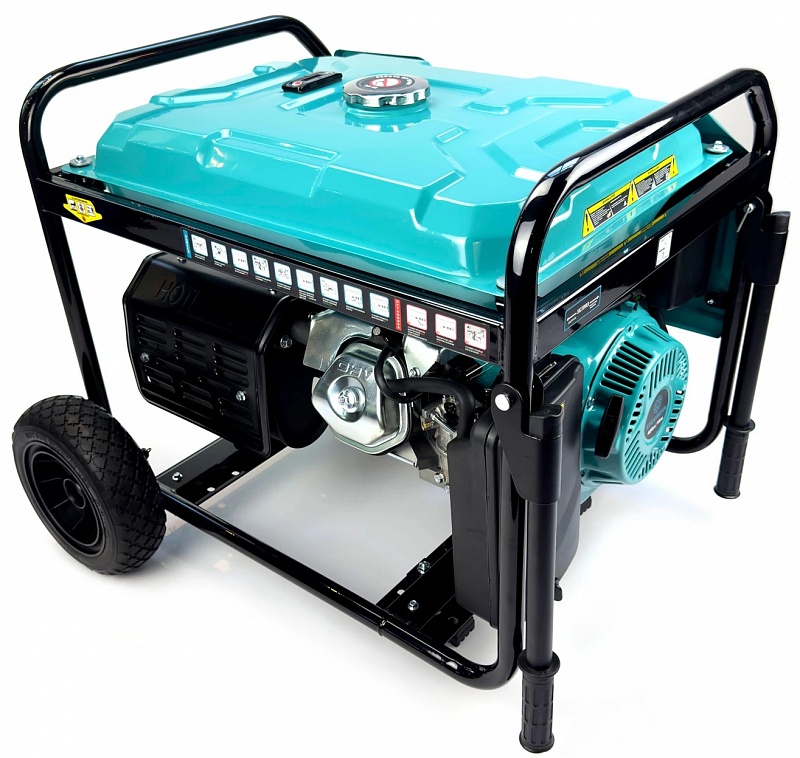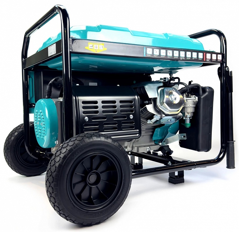 Синхронный однофазный генератор оснащен мощным бензиновым двигателем. Мощность мотора составляет 15 л.с., его объем 420 куб.см. Генератор запускается 2-мя способами: ручным стартером либо электростартером от аккумуляторной батареи.