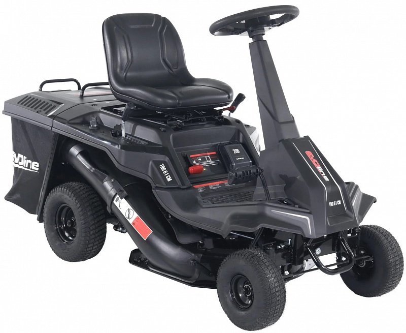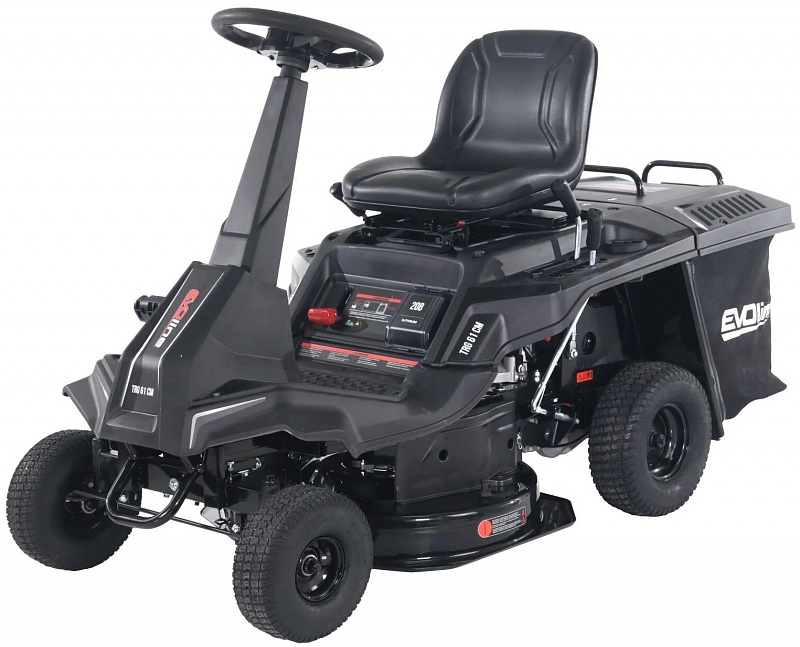 Садовый райдер EVOline TRG 61 CM отлично подойдет как для кошения больших площадей, так и газонов с множеством клумб, деревьев и прочих препятствий. Запуск двигателя возможен двумя способами: ручным или электрическим (поворот ключа) стартерами. Основным преимуществом данной модели можно назвать её маневренность. Ширина кошения данной газонокосилки с сиденьем всего 61 см, что не так сильно отличается от ширины обычных газонокосилок, но Вам не придется постоянно ходить за ней. Вы будете косить траву с удовольствием.