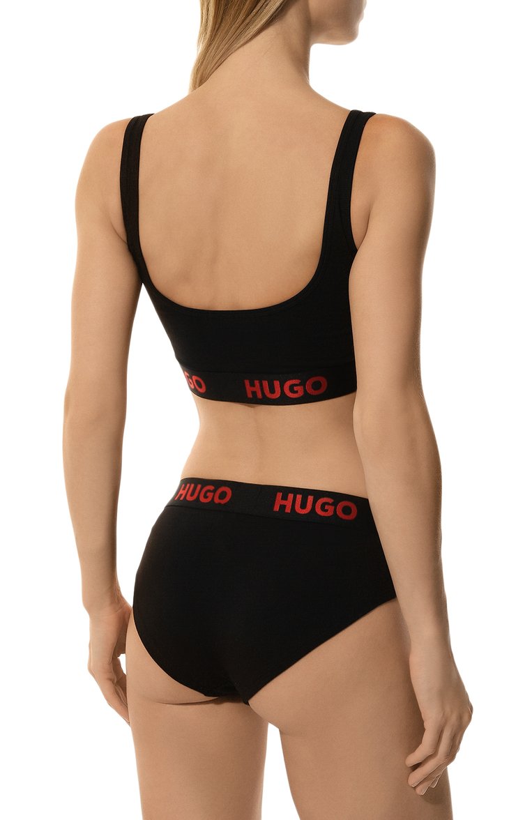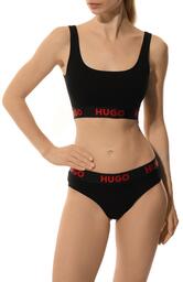 Трусы выполнили из стрейчевого трикотажа на основе органического хлопка. Модель дополнили эластичным поясом с жаккардовым паттерном в виде логотипа марки фирменного алого оттенка.