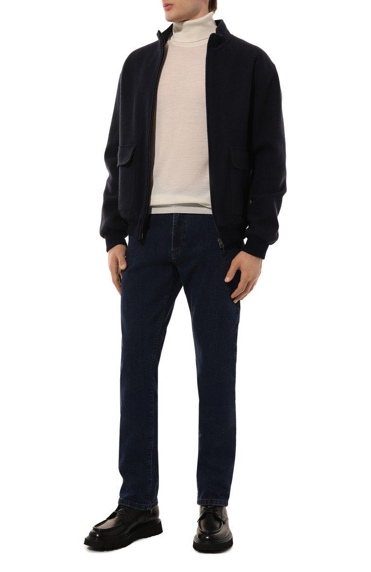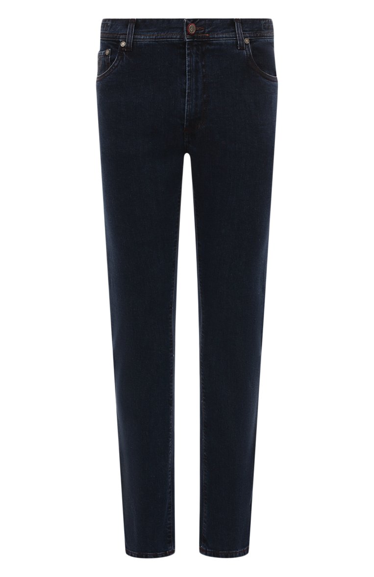 Джинсы из хлопка стрейч будут уместны и в повседневном, и в нестрогом офисном образе. Пояс модели подчеркнули брендированным патчем, а два кармана из пяти – фирменным ручным швом.