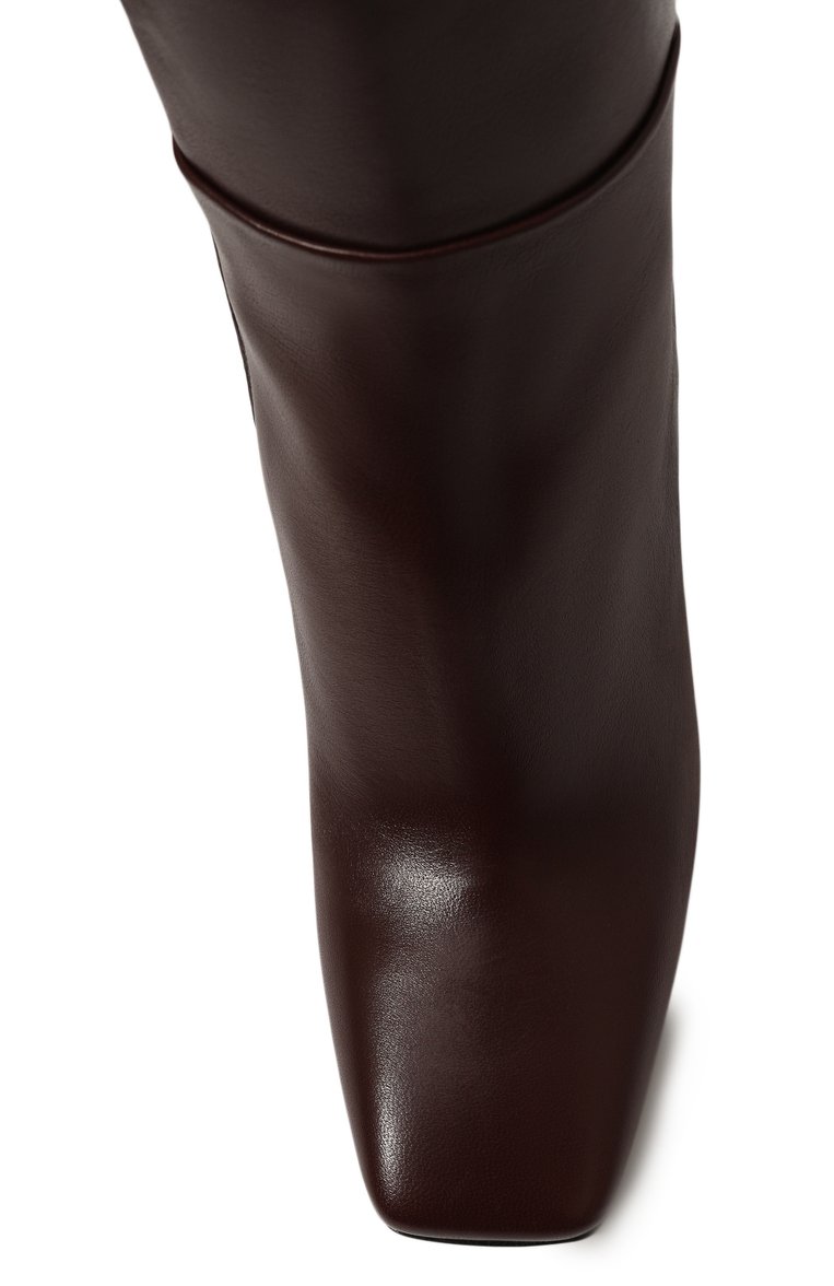 Сапоги Anna с квадратным мысом сшили из эластичной наппы, а для внутренней отделки использовали мягкую телячью кожу. Пару с боковой молнией поставили на устойчивый плоский каблук.