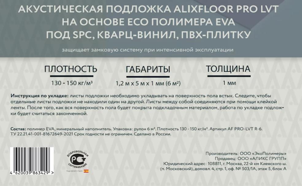 AlixFloor Акустическая подложка AlixFloor PRO LVT