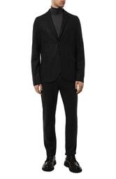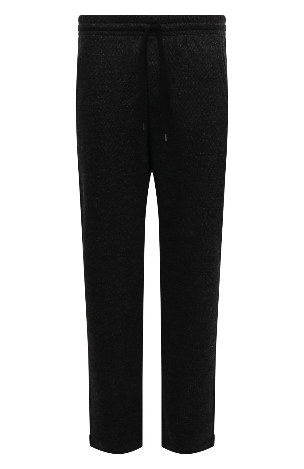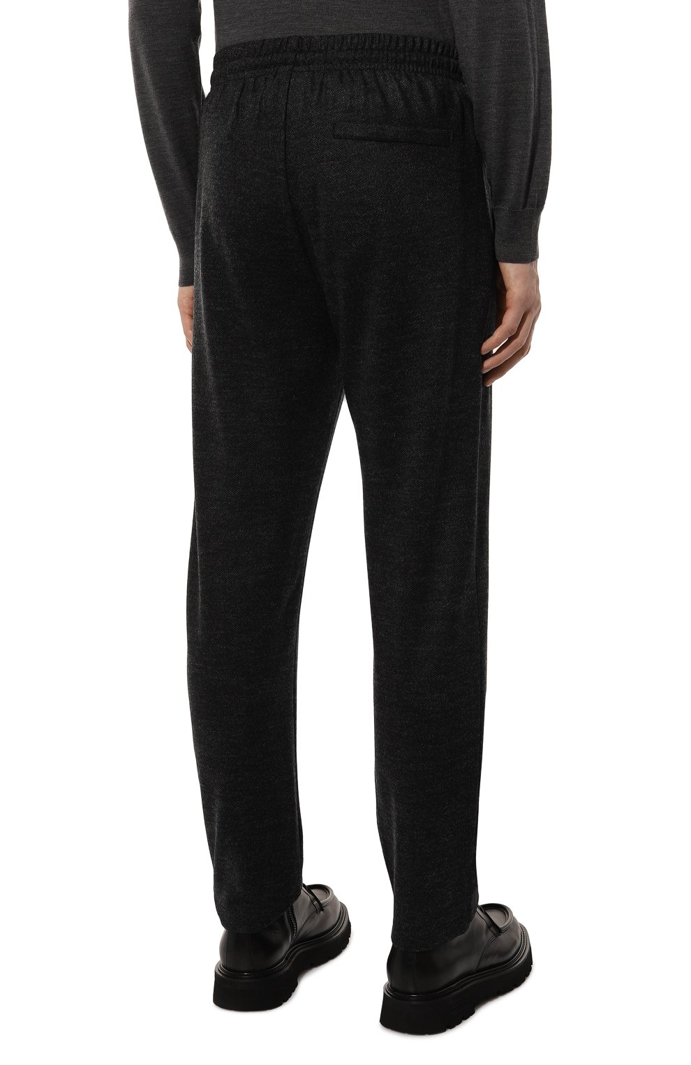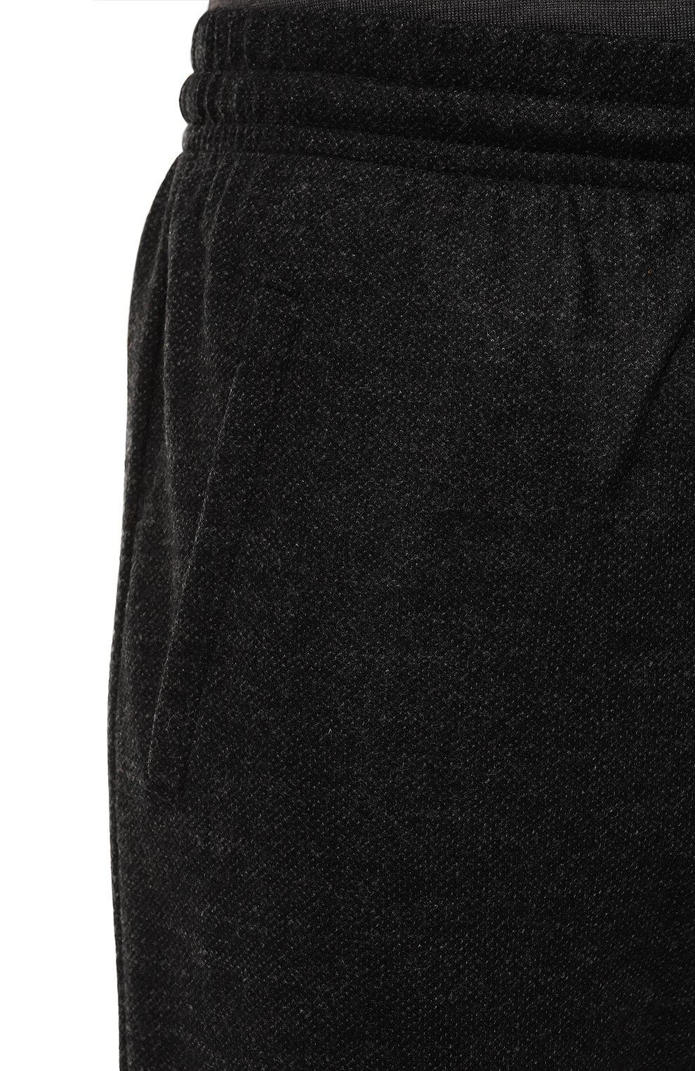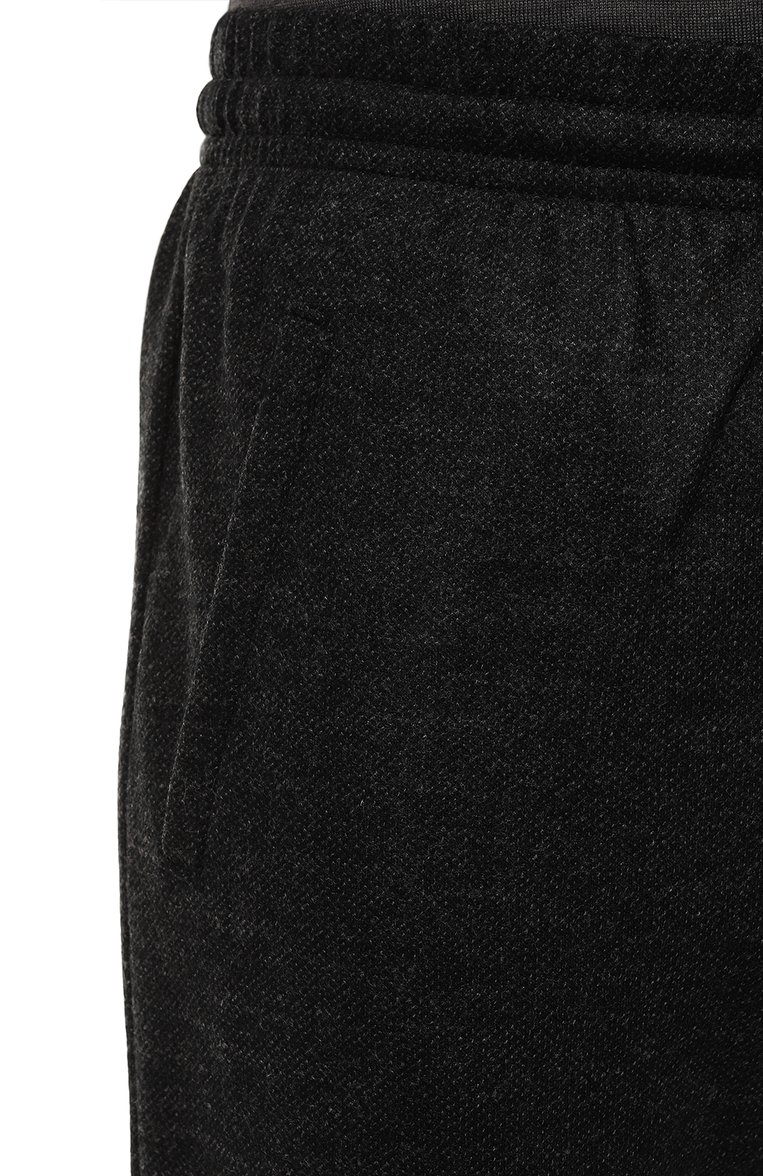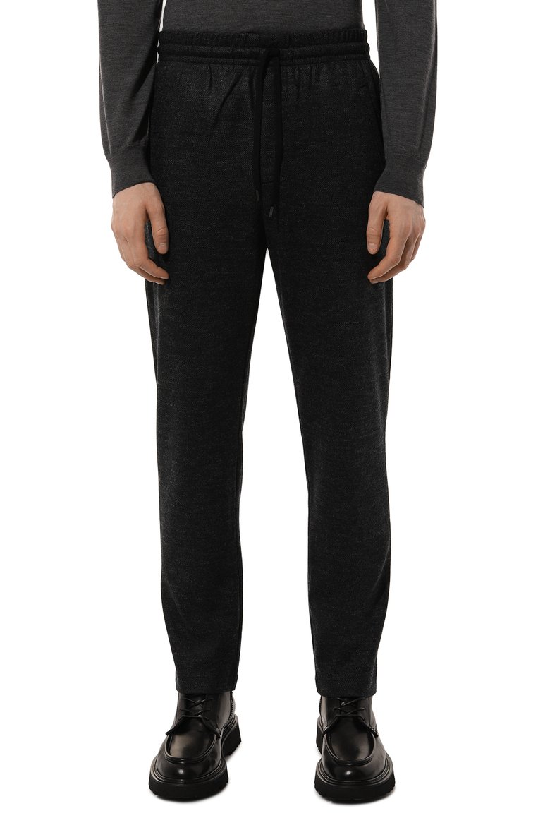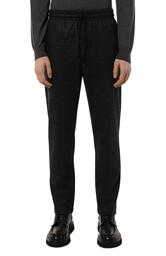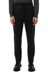 Брюки с двумя прорезными карманами по бокам и одним сзади выполнили из фактурной шерсти. Посадка зауженной модели регулируется широким эластичным поясом-кулиской.