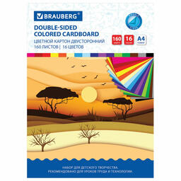 Набор из 2 шт, Картон цветной А4 ТОНИРОВАННЫЙ В МАССЕ, 160 листов, 16 цветов, 180 г/м2, BRAUBERG, 115090 (115090)