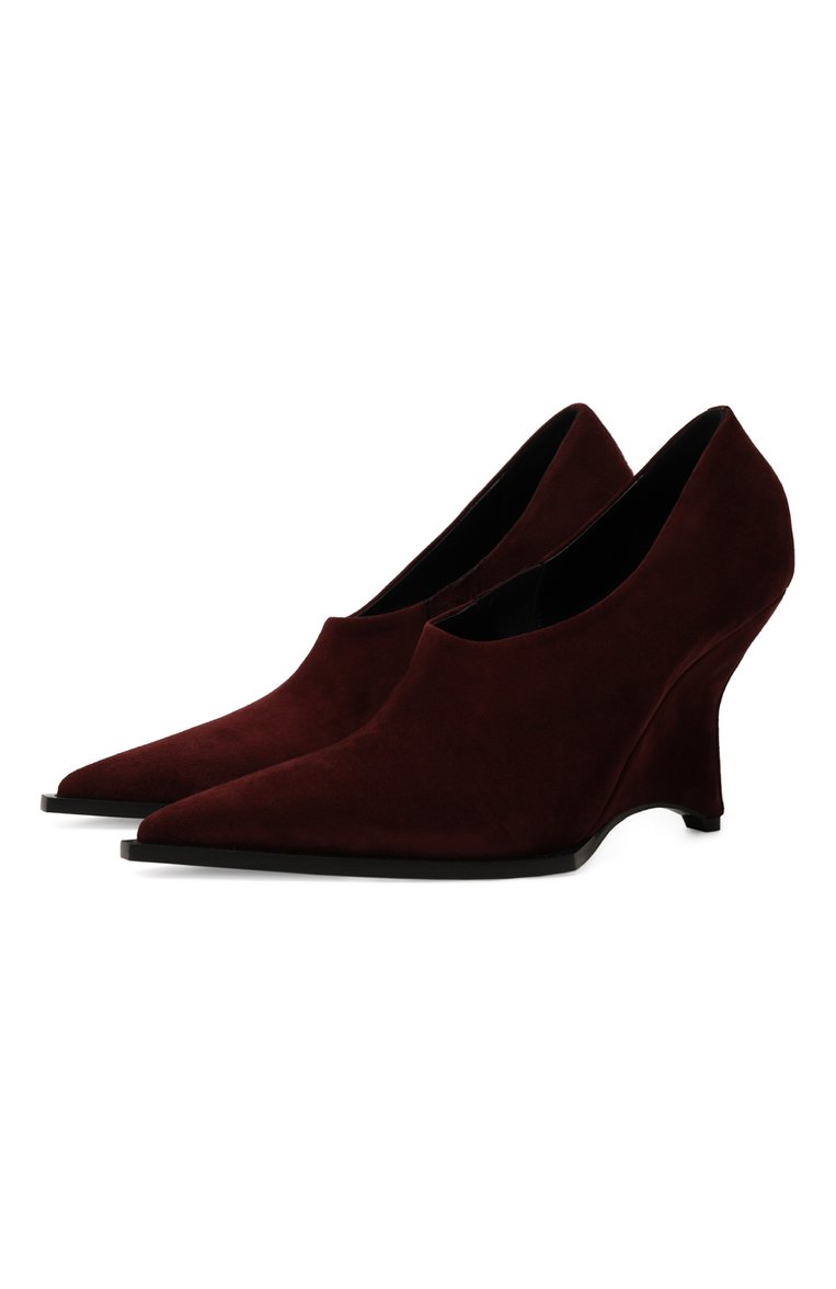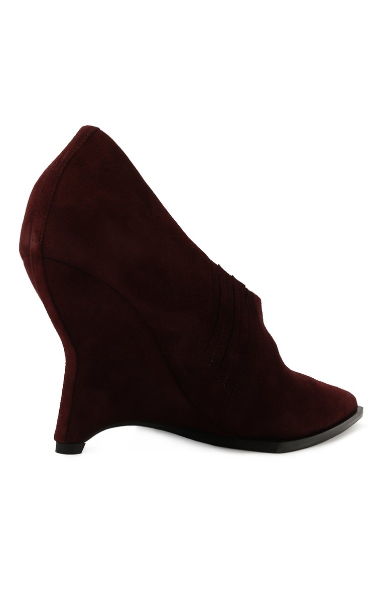 Остроносые ботильоны Lady высотой до щиколотки сшили из замши. Таким же материалом обтянули фигурную танкетку, поэтому обувь на выступающей подошве выглядит монолитной.