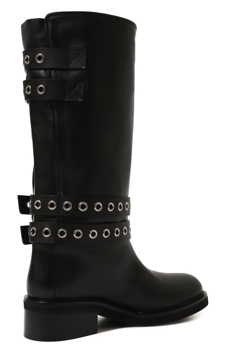 Сапоги Harley из телячьей кожи декорированы регулируемыми ремешками с люверсами и пряжками. Модель без застежки отделали внутри козьей кожей и поставили на невысокий устойчивый каблук.