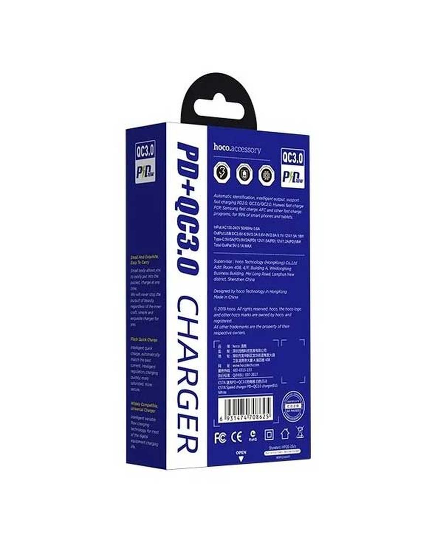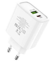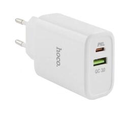 Описание товара Сетевое зарядное устройство Hoco C57A, USB+Type-C, PD+QC3.0, белый (08625)