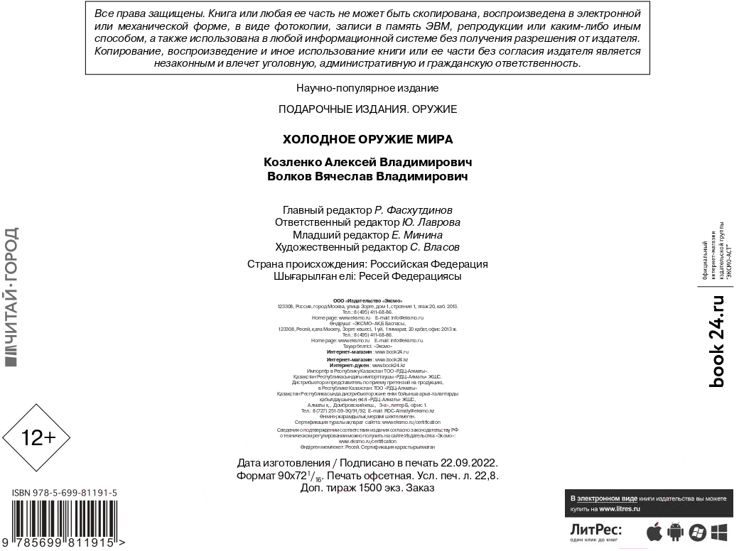 Книга Бомбора Холодное оружие мира (Козленко А.В., Волков В.В.)