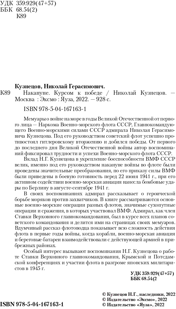 Книга Эксмо Накануне. Курсом к победе (Кузнецов Н.)
