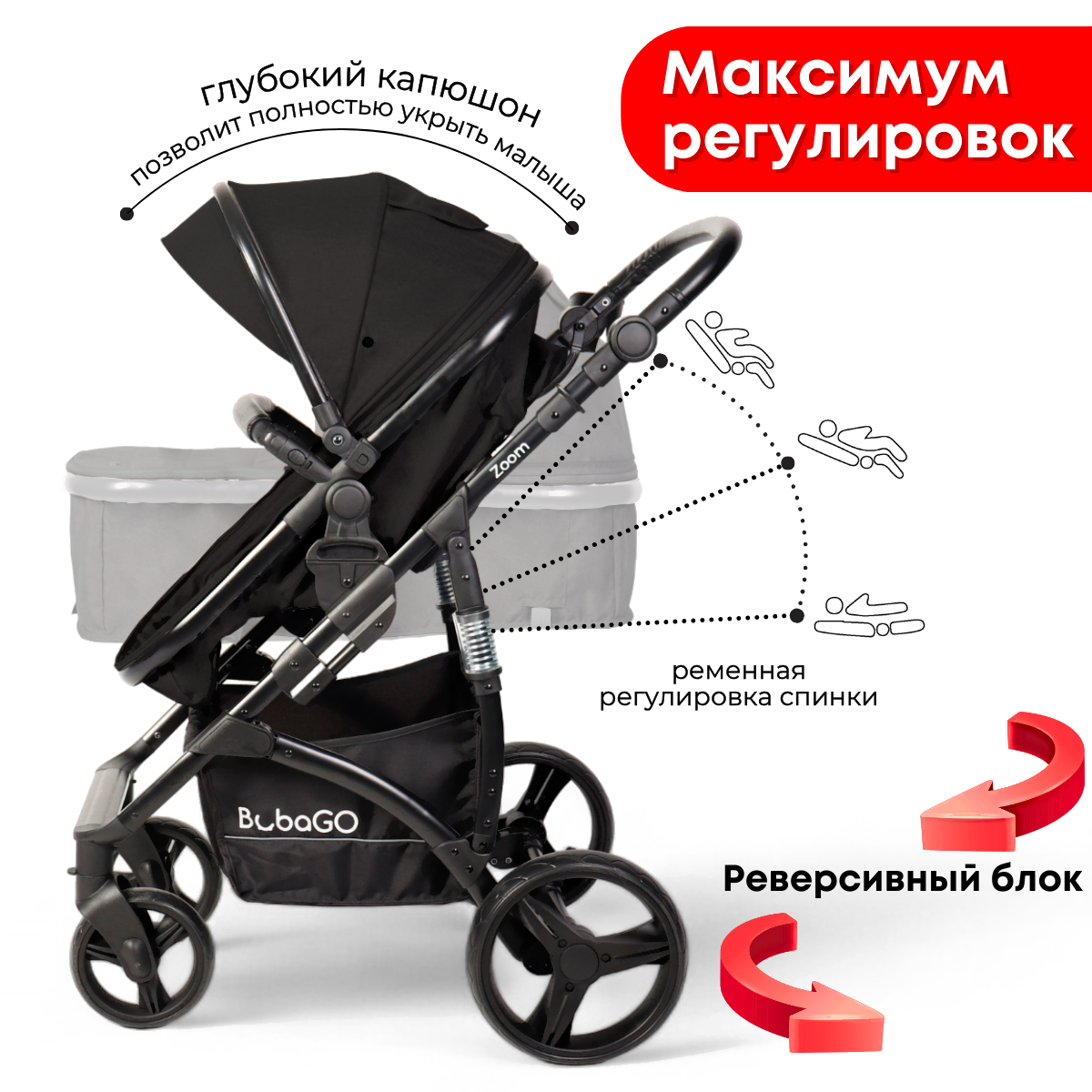 Детская универсальная коляска Bubago Zoom color 2 в 1 / BG 135-B-1 (черный)