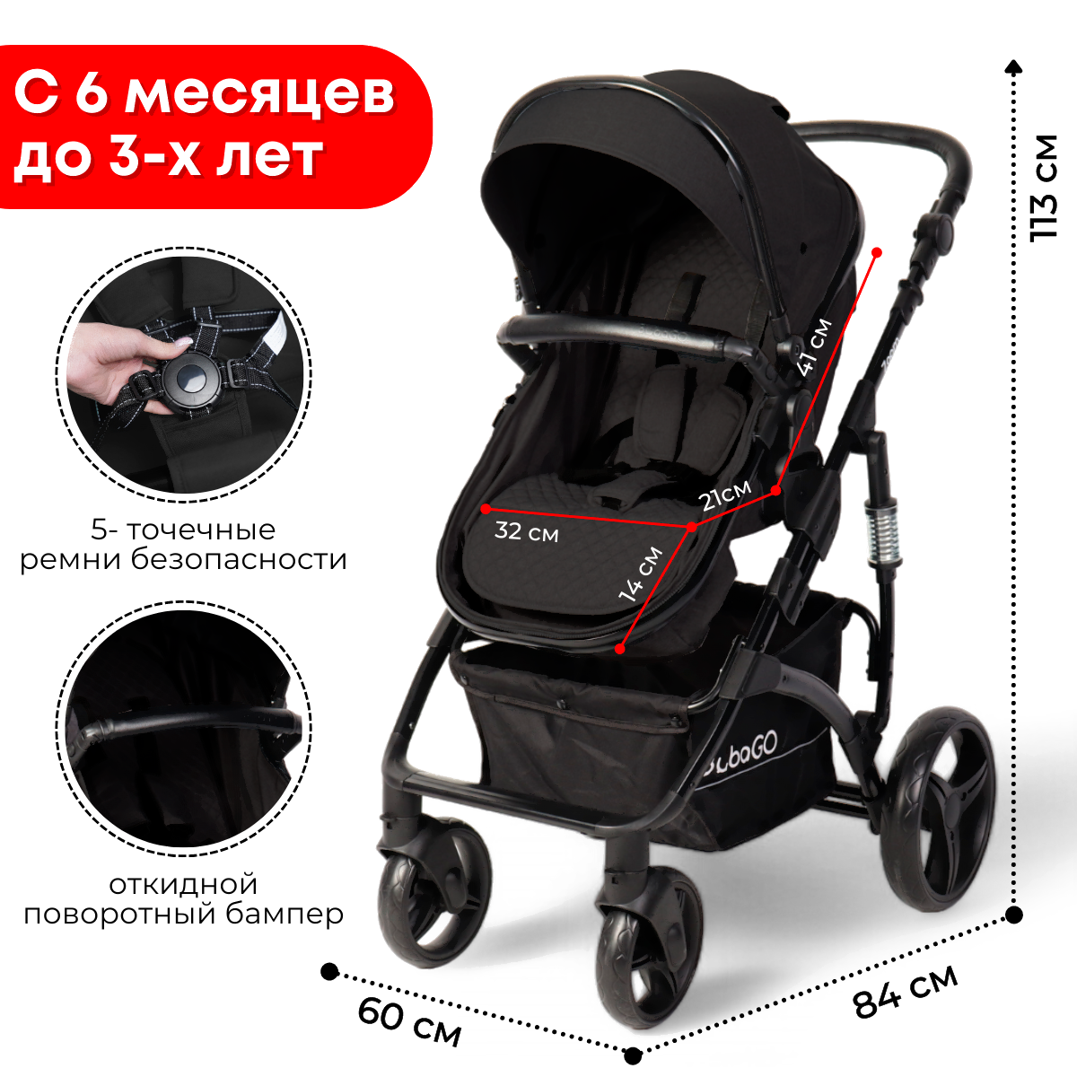 • Общая высота коляски 113 см