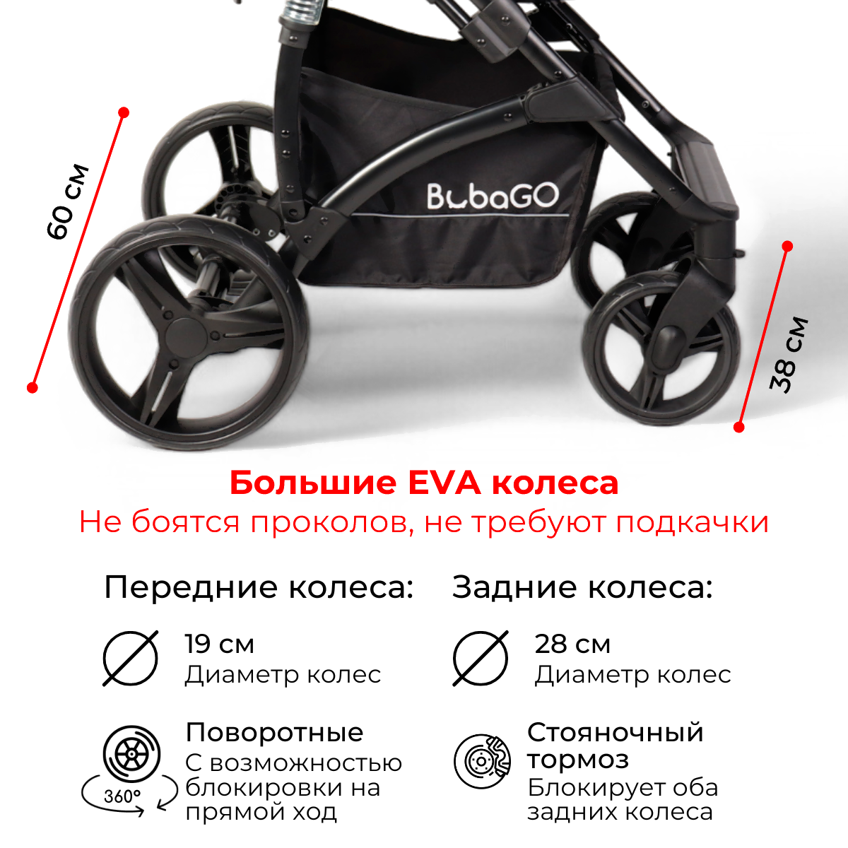 • Диаметр переднего колеса 19 см