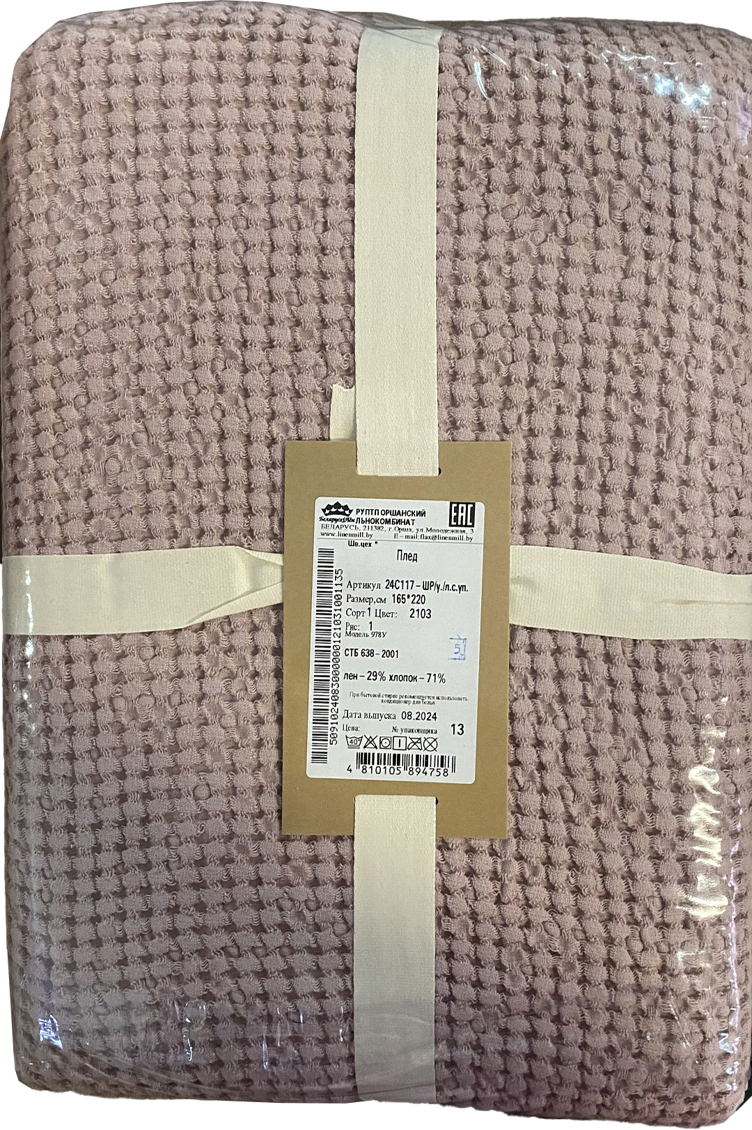 Плед Беларускі лён 165x220 24С117-ШР/у./л.с.уп. (103 рис.2 /сорт1)