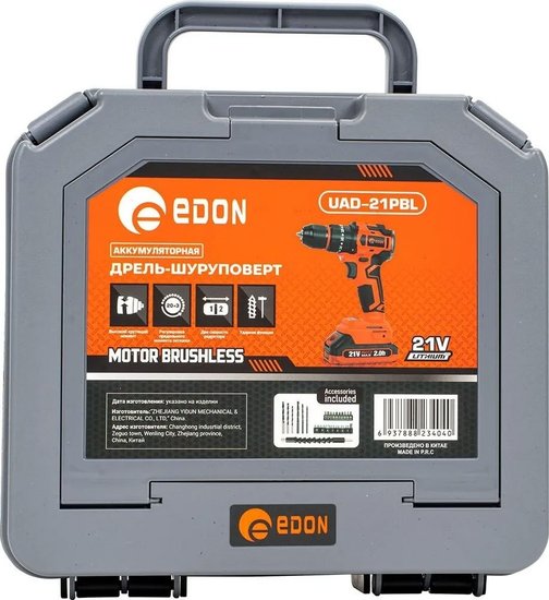 ❗️Текст описания составлен при помощи искусственного интеллекта.✅ Ударная дрель-шуруповерт Edon UAD-21PBL — это надежный инструмент, который станет незаменимым помощником в вашем арсенале. С мощным бесщеточным двигателем и возможностью работы от аккумулятора на 21 В, вы сможете легко справляться с любыми задачами.✅ Благодаря функции блокировки шпинделя и регулировке оборотов, вы получите полный контроль над процессом работы. Два режима скорости вращения позволяют адаптировать инструмент под различные материалы и условия.✅ Удобный быстрозажимной патрон диаметром 10 мм обеспечивает быструю замену бит и сверл, а реверс позволяет без труда выполнять работы в обратном направлении. Подсветка рабочей зоны делает использование дрели-шуруповерта комфортным даже в условиях низкой освещенности.⚠️ Обратите внимание, что максимальный крутящий момент в 40 Н·м и частота ударов 1 530 ударов/мин делают этот инструмент идеальным для выполнения как легких, так и более сложных задач.✅ В комплекте с дрелью идут два аккумулятора ёмкостью 2 А•ч и удобный кейс для хранения, что делает Edon UAD-21PBL отличным выбором для профессионалов и любителей.❗️Текст описания составлен при помощи искусственного интеллекта.✅ Ударная дрель-шуруповерт Edon UAD-21PBL — это надежный инструмент, который станет незаменимым помощником в вашем арсенале. С мощным бесщеточным двигателем и возможностью работы от аккумулятора на 21 В, вы сможете легко справляться с любыми задачами.✅ Благодаря функции блокировки шпинделя и регулировке оборотов, вы получите полный контроль над процессом работы. Два режима скорости вращения позволяют адаптировать инструмент под различные материалы и условия.✅ Удобный быстрозажимной патрон диаметром 10 мм обеспечивает быструю замену бит и сверл, а реверс позволяет без труда выполнять работы в обратном направлении. Подсветка рабочей зоны делает использование дрели-шуруповерта комфортным даже в условиях низкой освещенности.⚠️ Обратите внимание, что максимальный крутящий момент в 40 Н·м и частота ударов 1 530 ударов/мин делают этот инструмент идеальным для выполнения как легких, так и более сложных задач.✅ В комплекте с дрелью идут два аккумулятора ёмкостью 2 А•ч и удобный кейс для хранения, что делает Edon UAD-21PBL отличным выбором для профессионалов и любителей.
