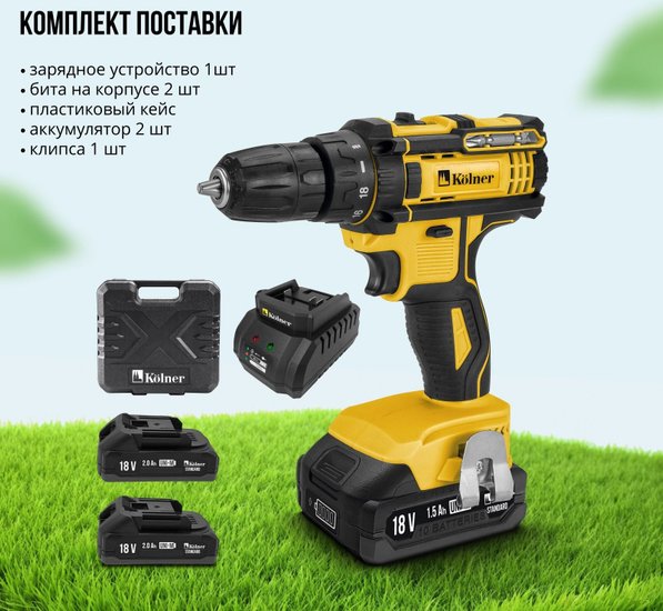 • Комплектация - Аккумулятор: 2 шт., Зарядное устройство: 1 шт;- Клипса: 1 шт;- Бита: 2 шт;- Пластиковый кейс: 1 шт.