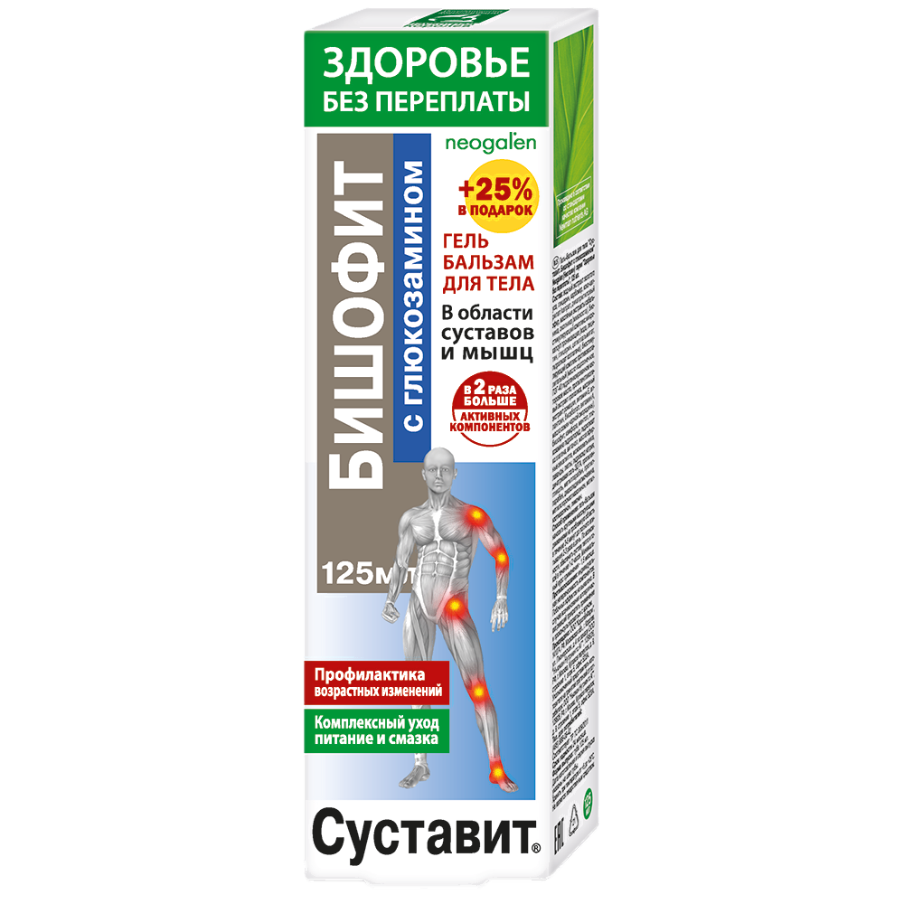 - Активные ингредиенты бишофит, глюкозамин, коллаген, экстракт сабельника, экстракт окопника, экстракт золотого уса, экстракт можжевельника, камфора