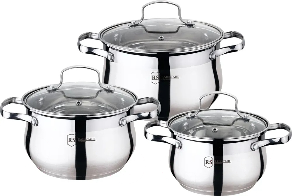 - В комплекте кастрюля (3 шт), крышка (3 шт)