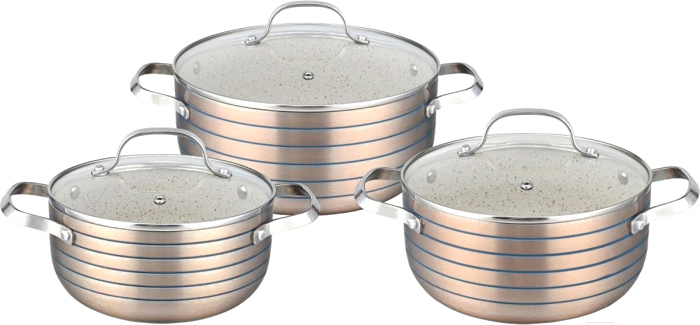 - В комплекте кастрюля (3 шт.), крышка (3 шт.)