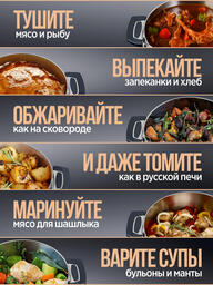 • Возможности использования газовая плита, электрическая плита, индукционная плита, духовка (без силиконовых накладок и крышки)