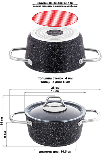 • Диаметр/длина дна посуды 14.5 см