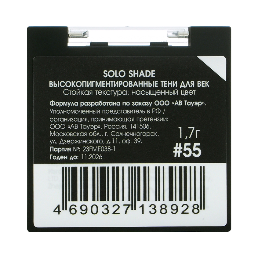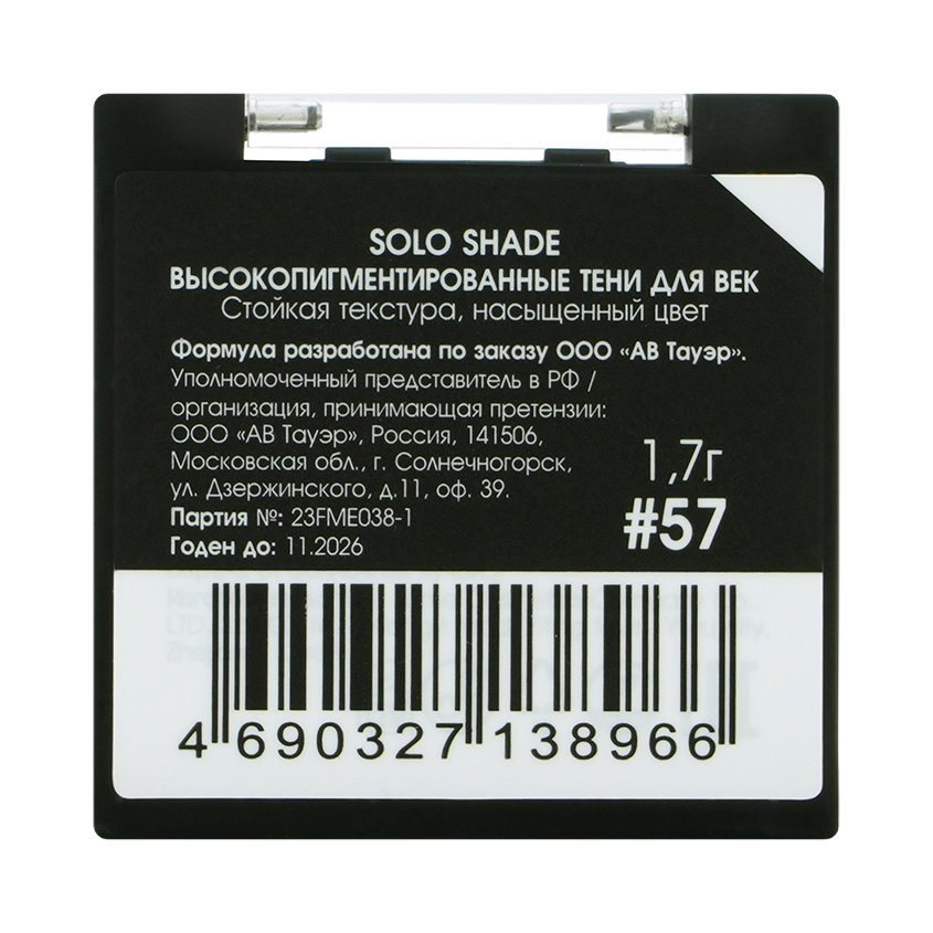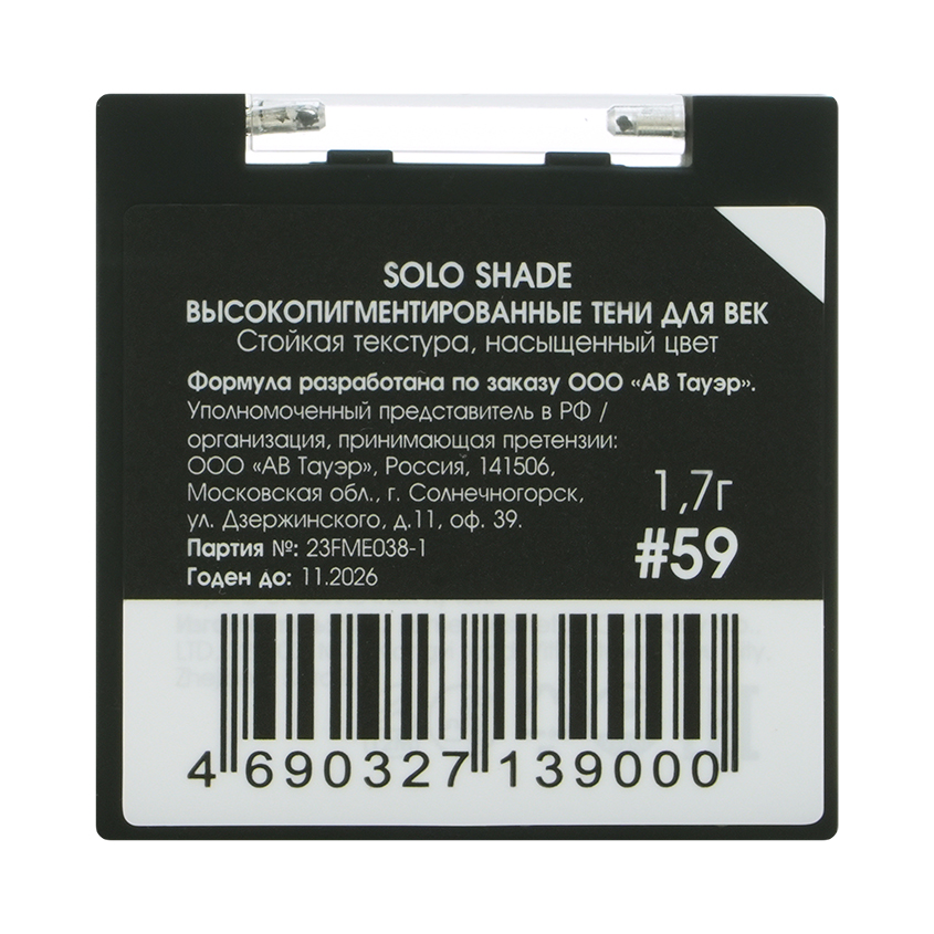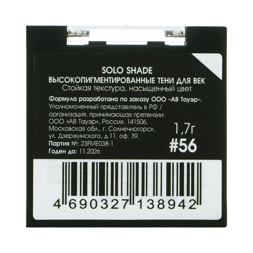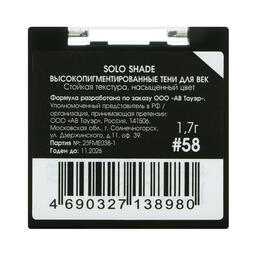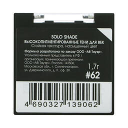 Моно-тени для век `ART-VISAGE` SOLO SHADE высокопигментированные тон 62 Лазурный
