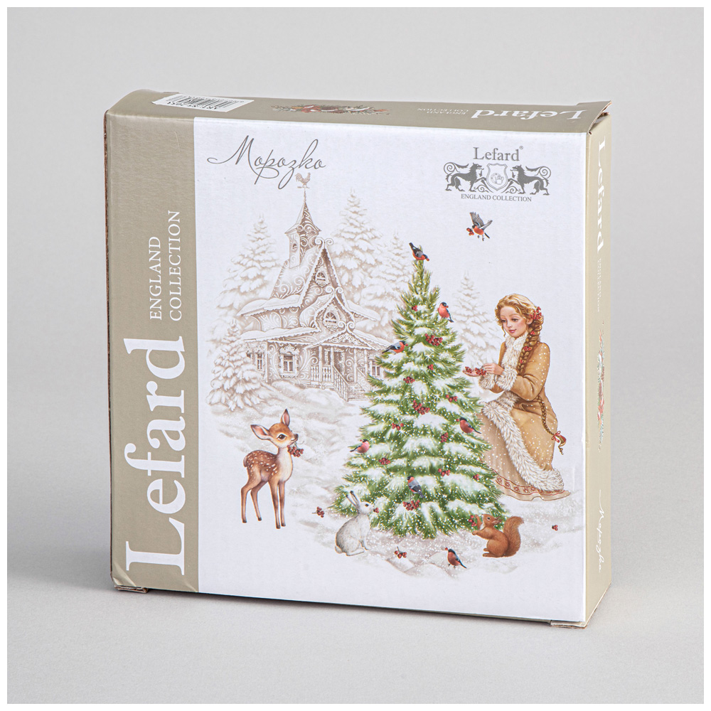 ТМ LEFARD эксклюзивная коллекция "Морозко" создана по мотивам любимой одноименной новогодней сказки, на которой выросли несколько поколений маленьких зрителей. Всем близка история доброй и красивой девушки Настеньки, которую злая мачеха отправила в лес на верную погибель. Детальные композиции, тонкие линии, высокое качество печати на тонкостенном белоснежном фарфоре превращает изделия в ожившие сюжеты. Разнообразие посуды и предметов сервировки добавят волшебства и красок в Ваш дом и порадует всех тех, кто сохранил в душе детскую радость и предвкушение чуда в самый ожидаемый праздник в году. Оригинальная упаковка. Прекрасный подарок. Вся продукция сертифицирована и безопасна для контакта с пищевыми продуктами. Можно использовать в СВЧ, не рекомендуется мыть в посудомоечных машинах во избежание повреждения золотой отводки (деколи) на изделиях.
