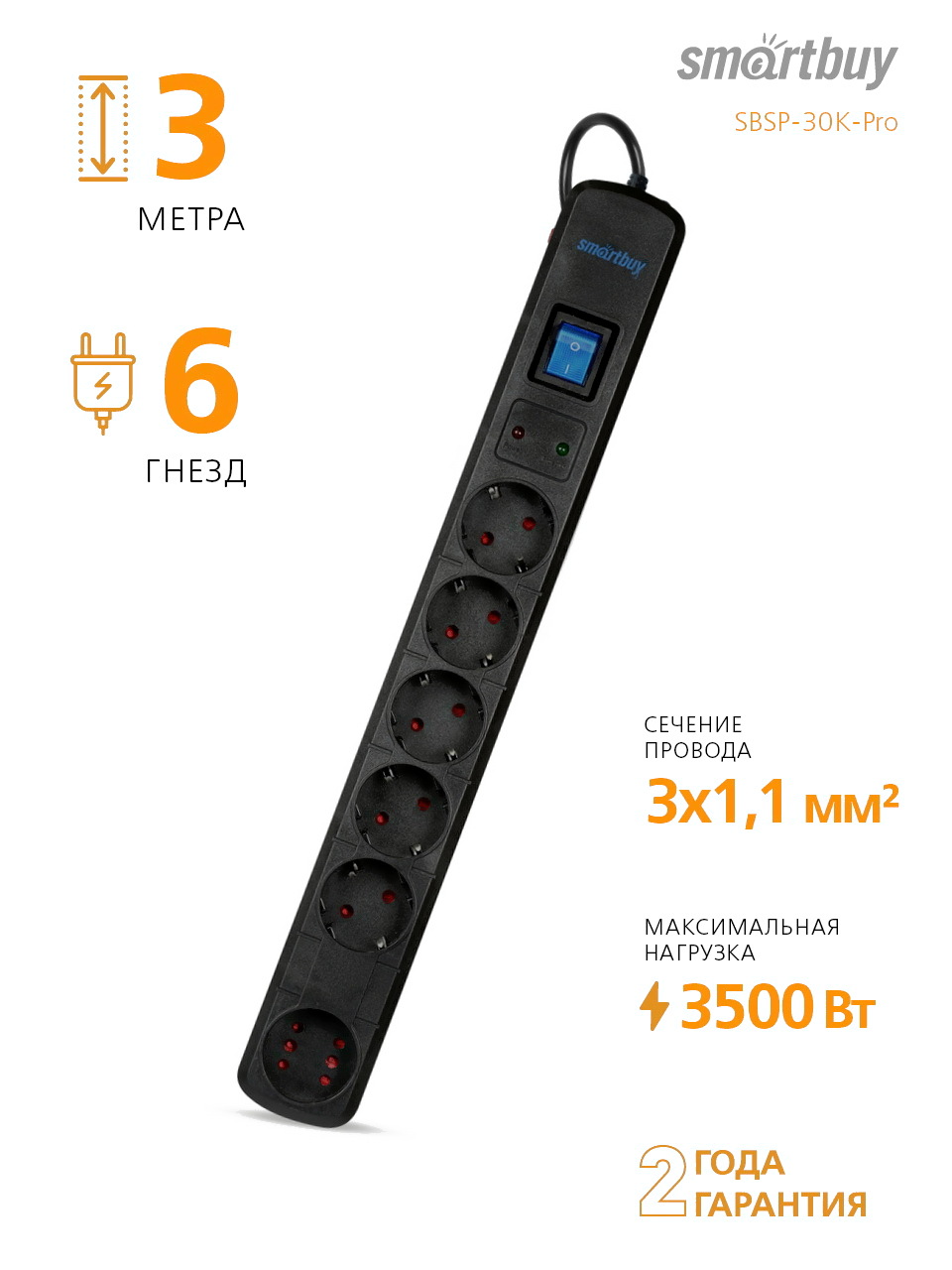 - Длина провода 3 м ( 3x1 мм² )