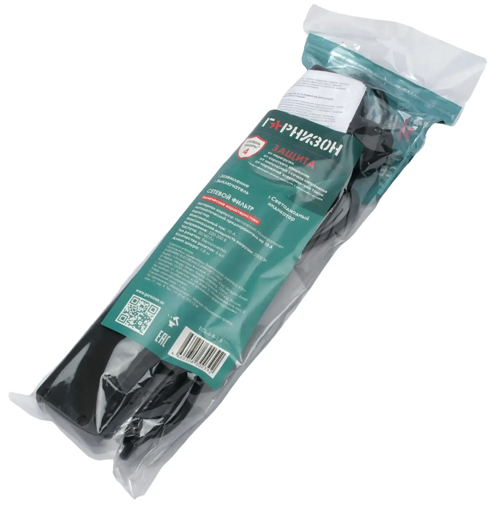 Сетевой фильтр Гарнизон ECL-6-B-1.8 (1.8м, черный)