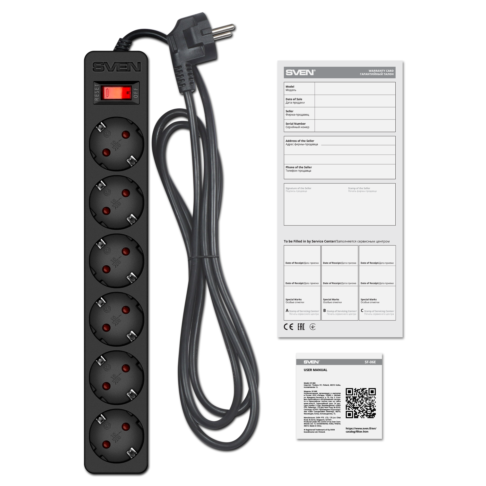 Сетевой фильтр Sven SF-06E (5м, черный)