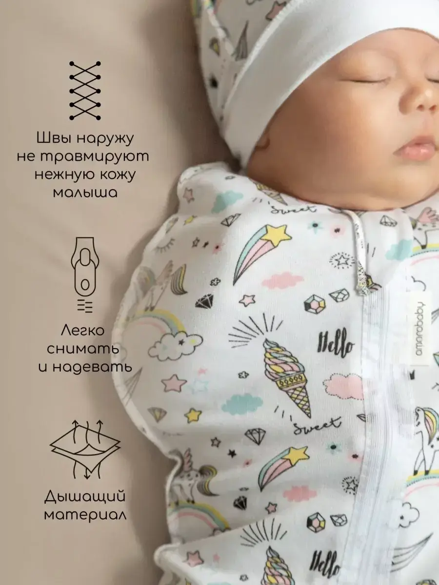 Пеленка-кокон детская Amarobaby Soft Hugs Единороги / AMARO-5701SH1-ED-56 (р.56-68)