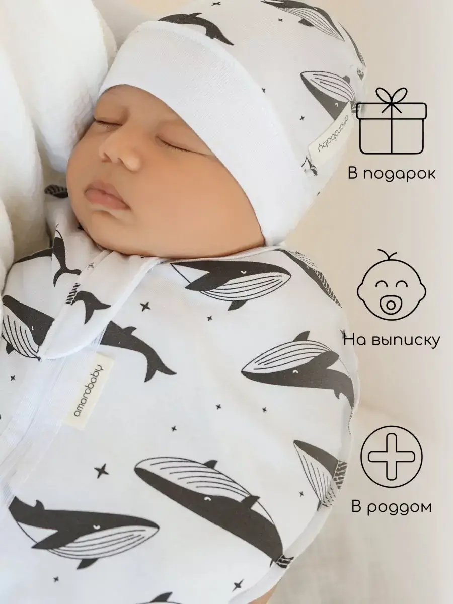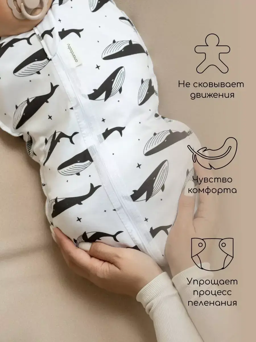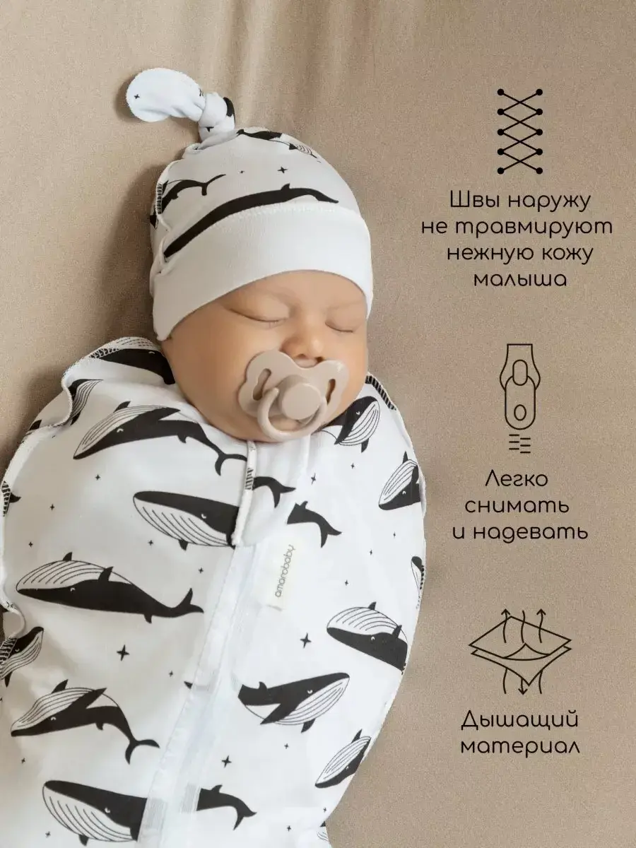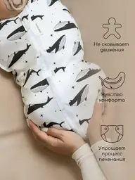 Пеленка-кокон детская Amarobaby Soft Hugs Киты / AMARO-5701SH2-KI-68 (р.68-74)